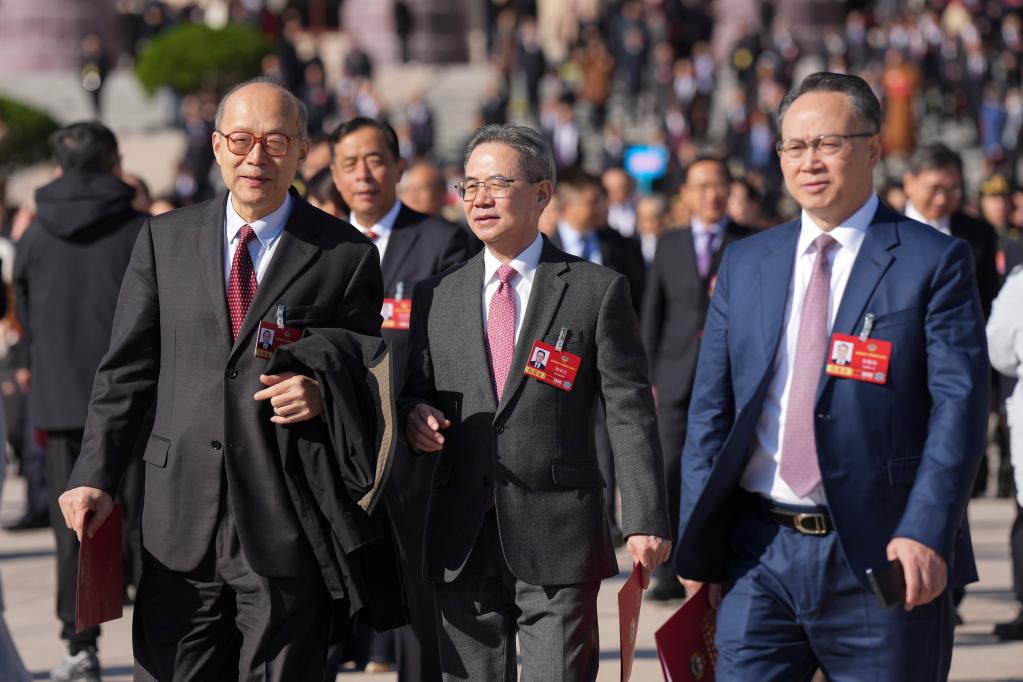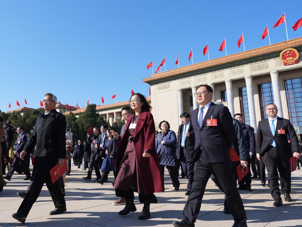 3月11日上午,中国人民政治协商会议第十四届全国委员会第四次会议在北京人民大会堂闭幕。这是闭幕会后,委员们走出人民大会堂。