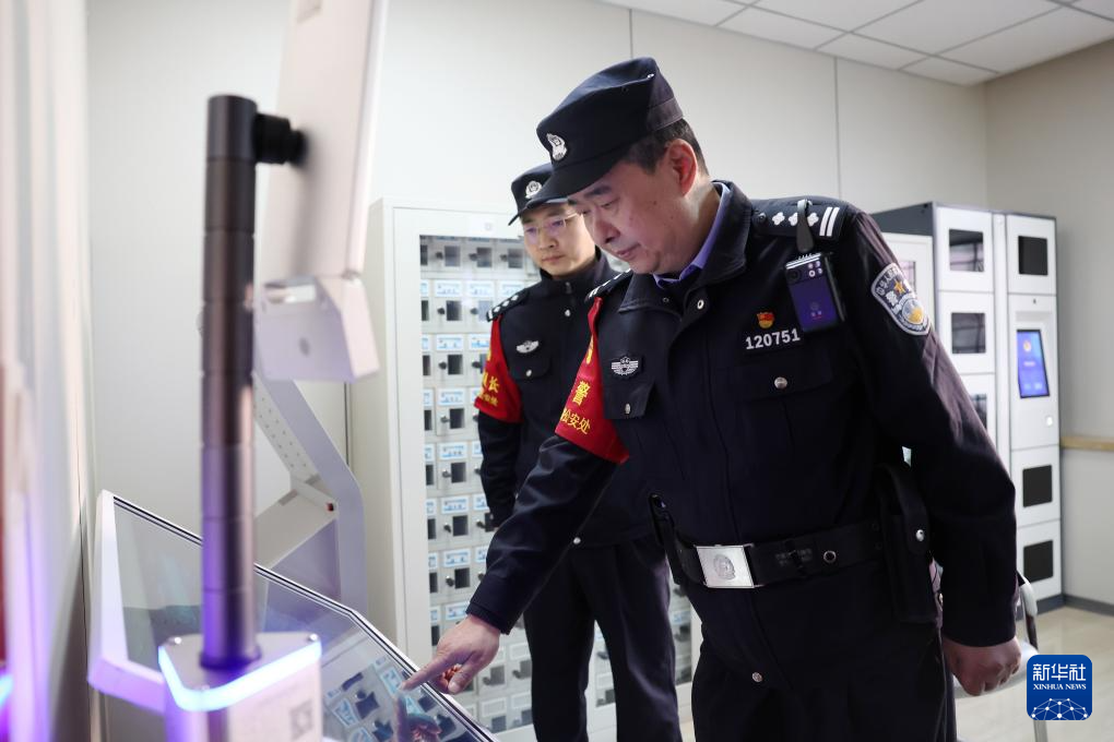 3月11日,兰州铁路公安处乘警支队民警段文革(右)在最后一次值乘前通过智慧乘务系统打卡。