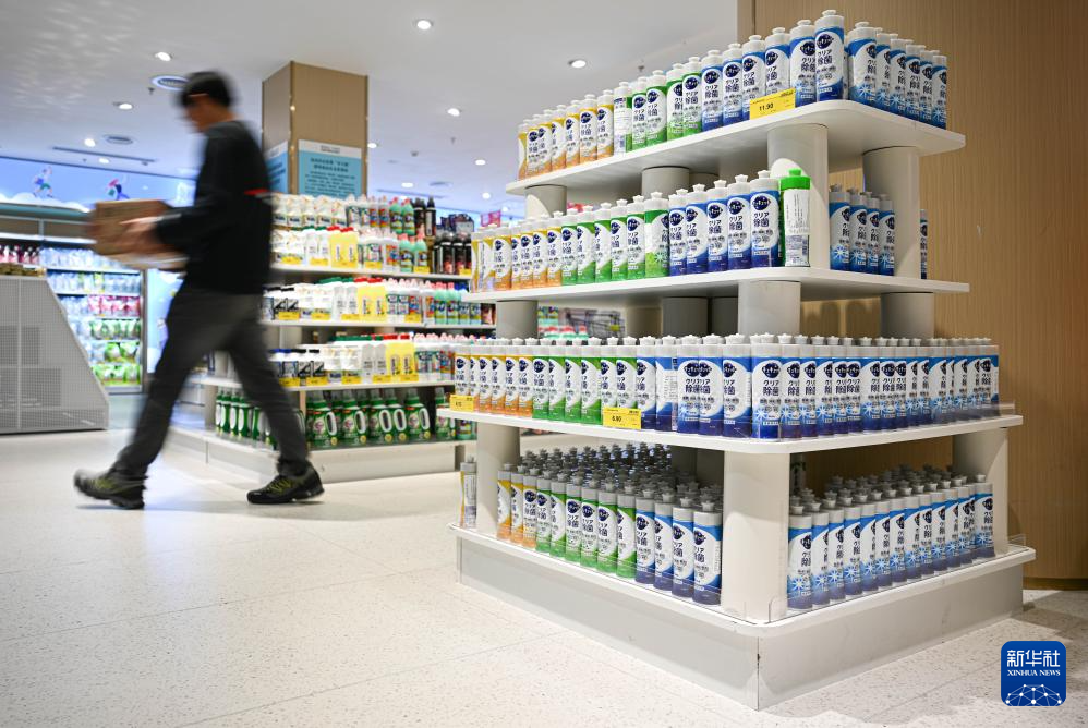 3月12日,工作人员在海口旺豪日用消费品免税店摆放免税奶粉。