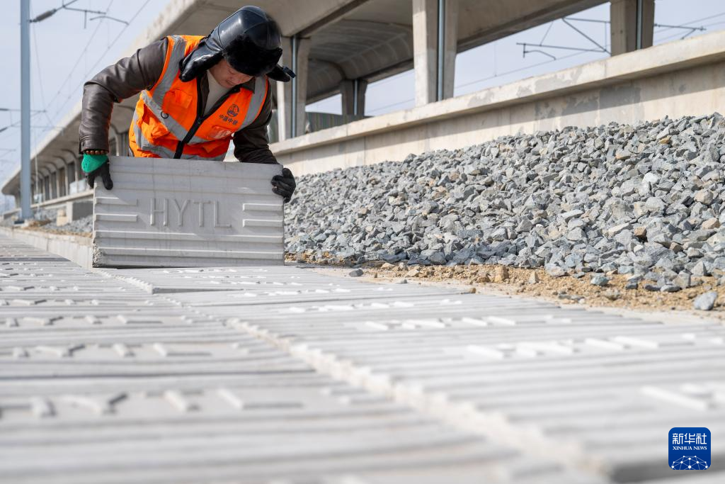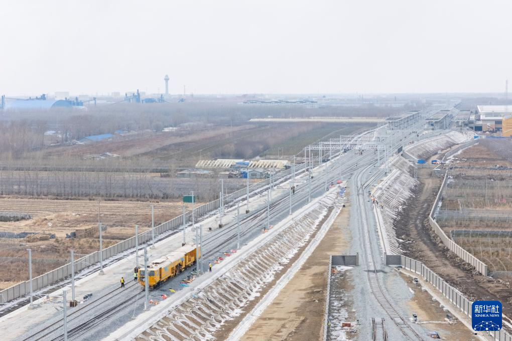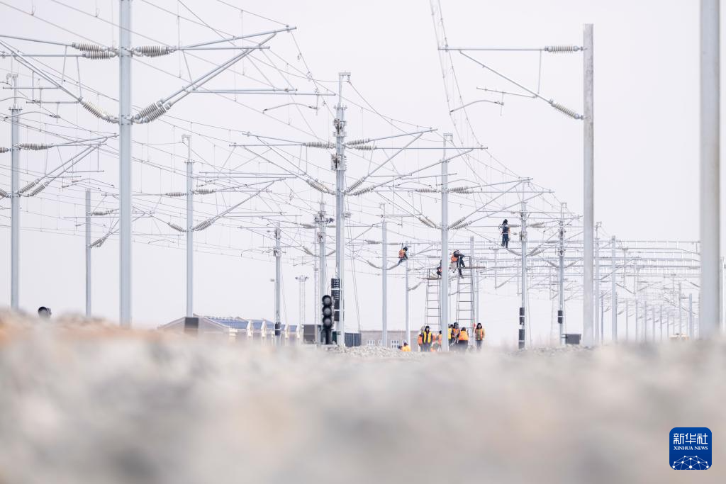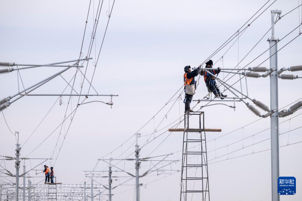 3月13日,在哈伊高铁绥化南站施工现场,来自中铁武汉电气化局的工人克服低温天气,全力推进哈伊高铁“四电”工程建设。据介绍,“四电”工程涵盖电力变电、接触网、通信信号、信息、灾害检测和相关配套房建等多个专业,目前工程建设已经完成90%。