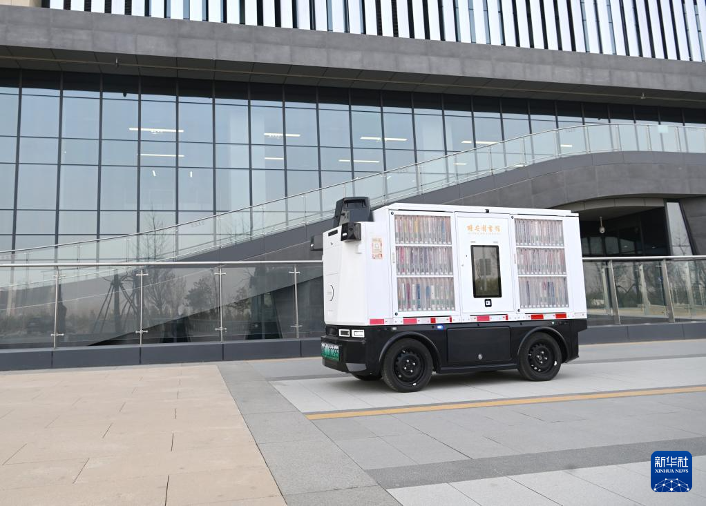 这是雄安图书馆无人驾驶送书车(3月25日摄)。