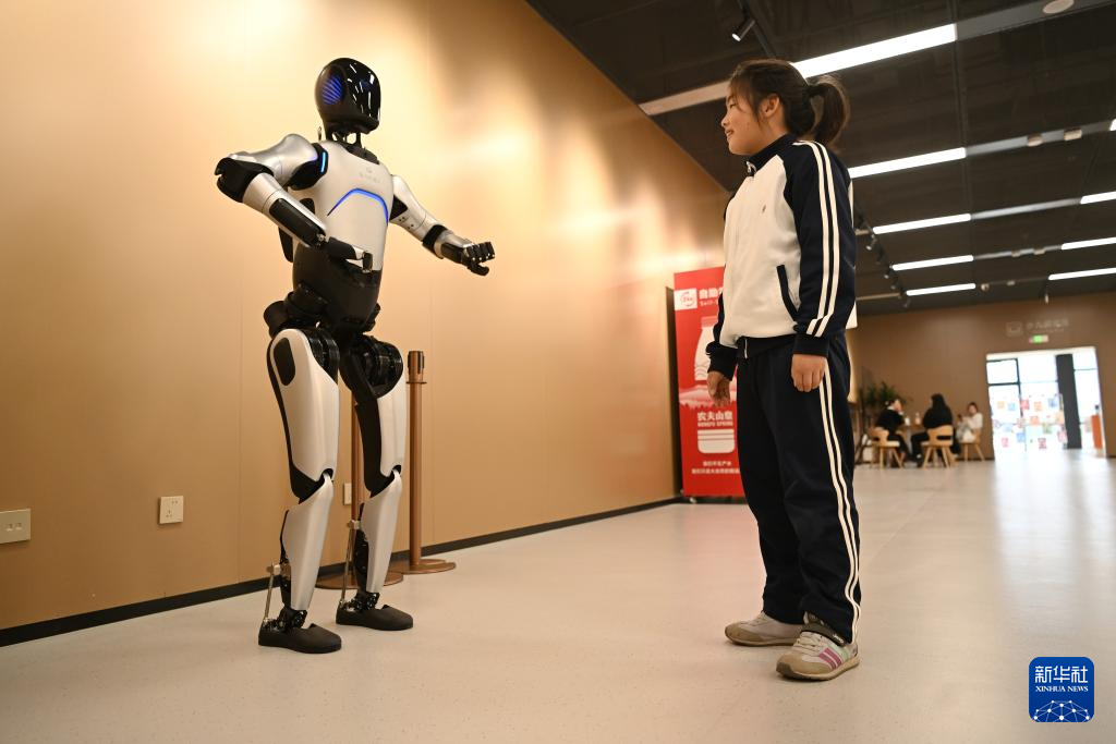 市民在雄安图书馆体验智能送书机器人(3月25日摄)。作为雄安新区首个城市级公共文化地标,雄安图书馆以智能化服务,为读者提供便捷阅读的新场景。