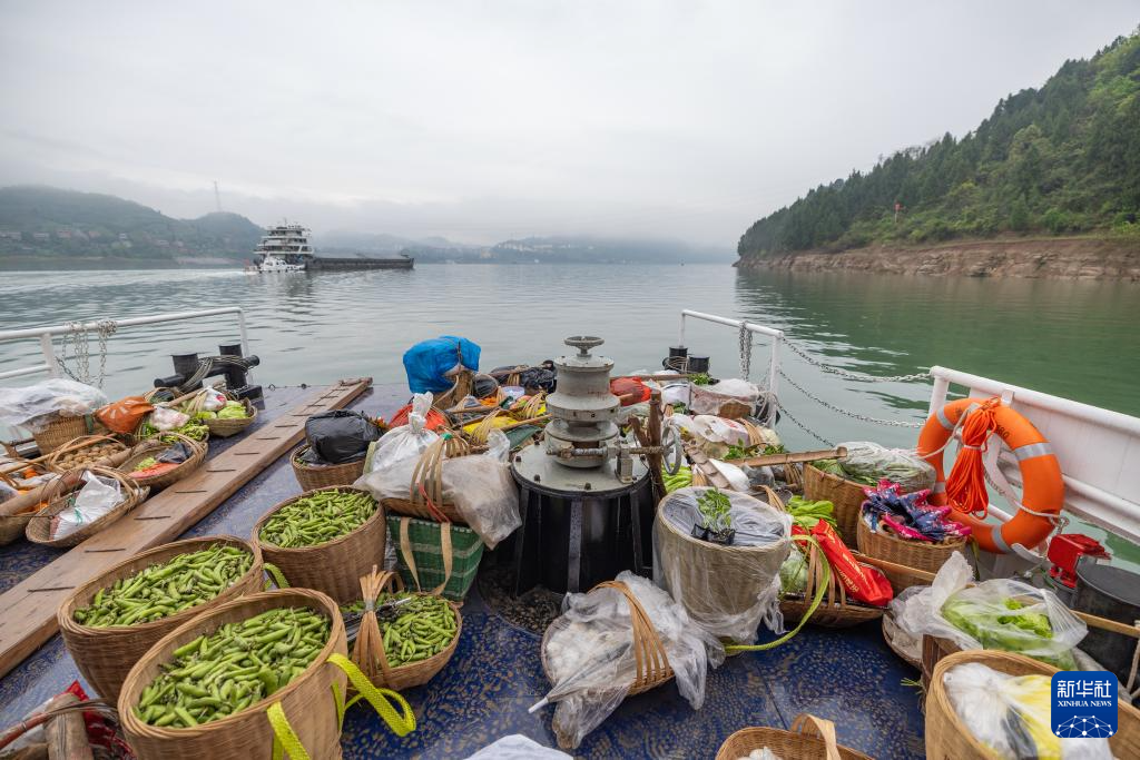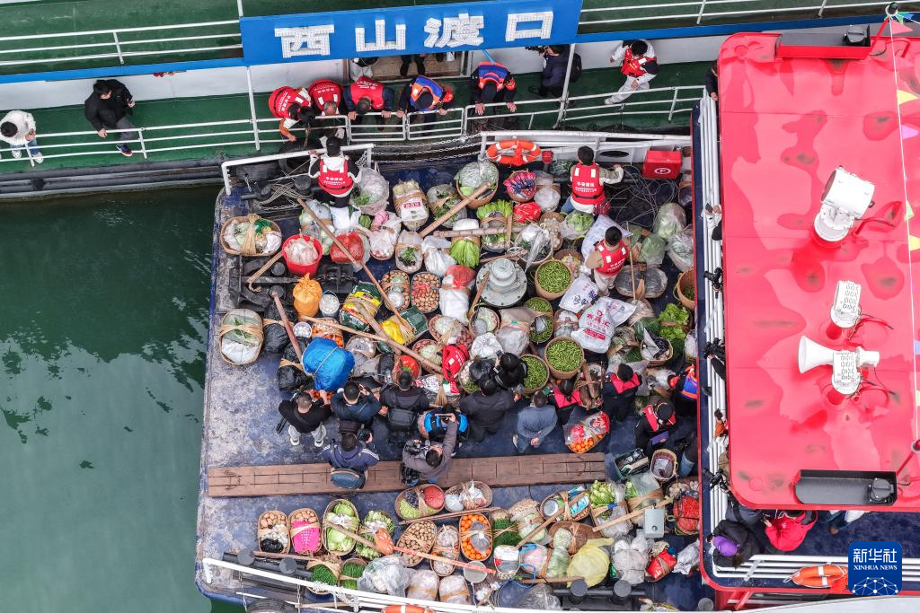 3月31日,在长江重庆忠县段,菜农搭乘“新渝忠客2180”客轮前往县城。