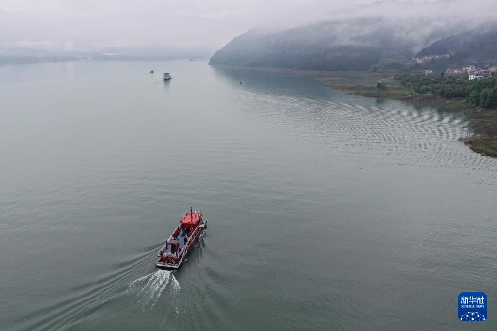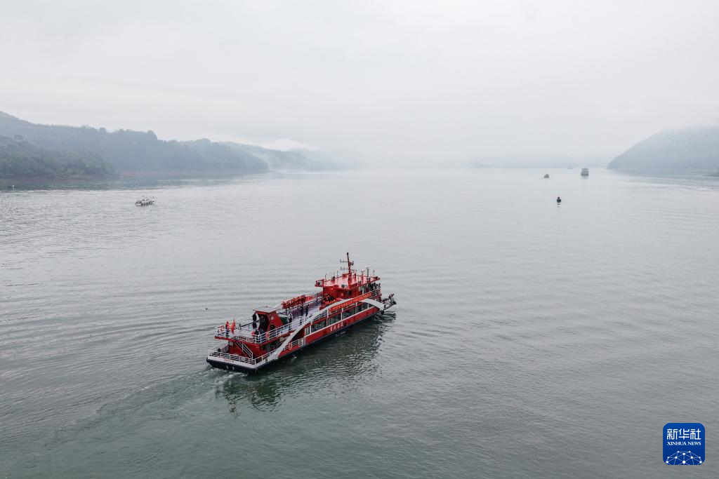 3月31日,在长江重庆忠县段,“新渝忠客2180”客轮顺利抵达县城西山码头(无人机照片)。
