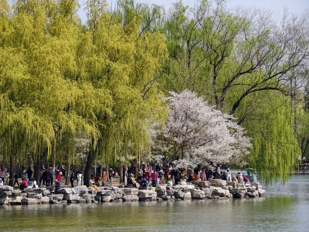 4月1日,游客在北京玉渊潭公园游览。新华社记者 邢广利摄