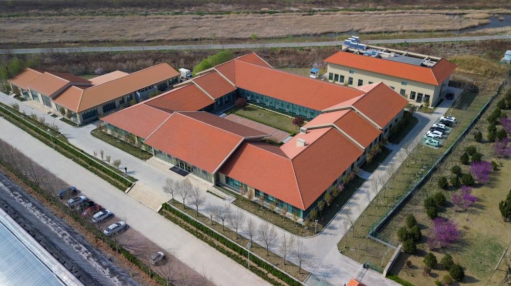 4月1日拍摄的寿光蔬菜种质资源库(无人机照片)。