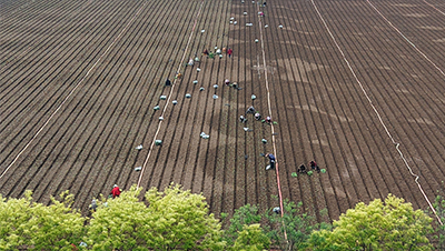 河南省焦作市温县黄庄镇常庄村农民在田间栽植蔬菜苗。